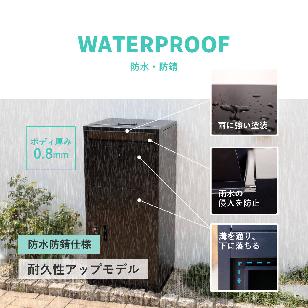 - 上部投函口、メールボックス、メイン扉での多様な受け取りが可能